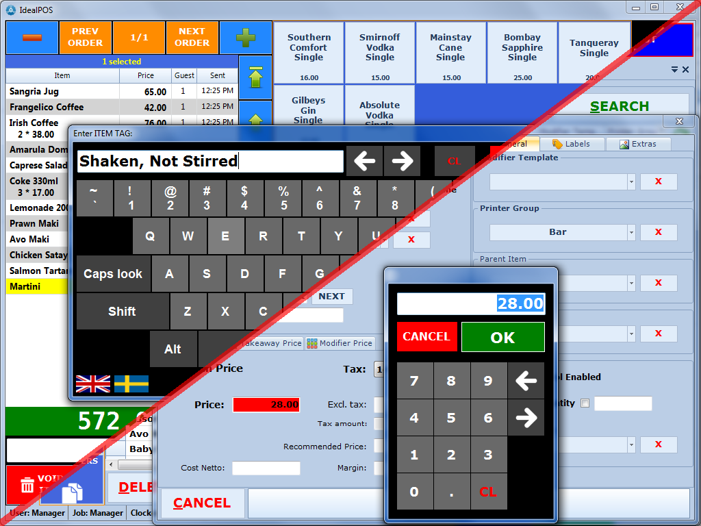 - on-screen keyboard is available in all screens (Order Entry, Restaurant, Settlement, Back Office)