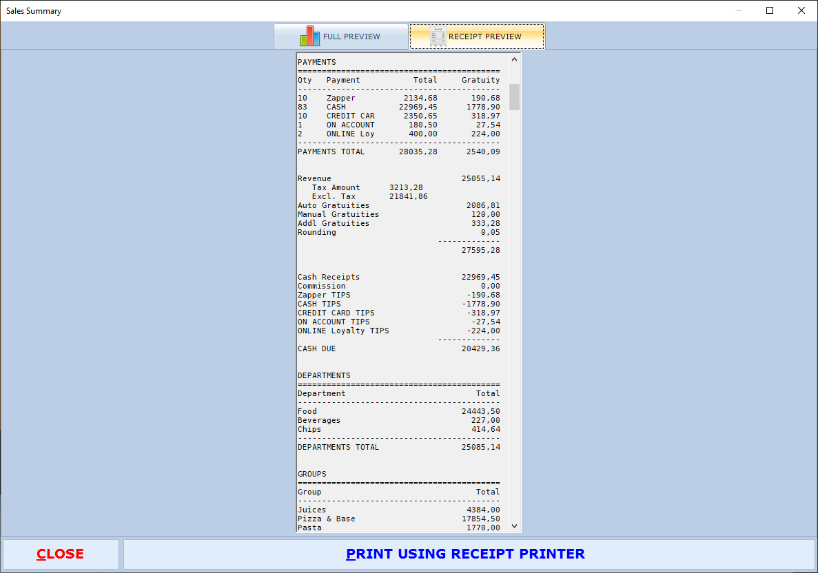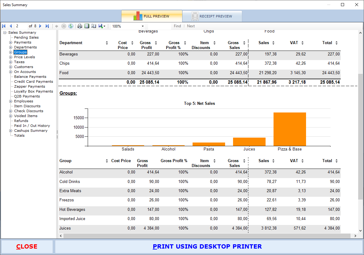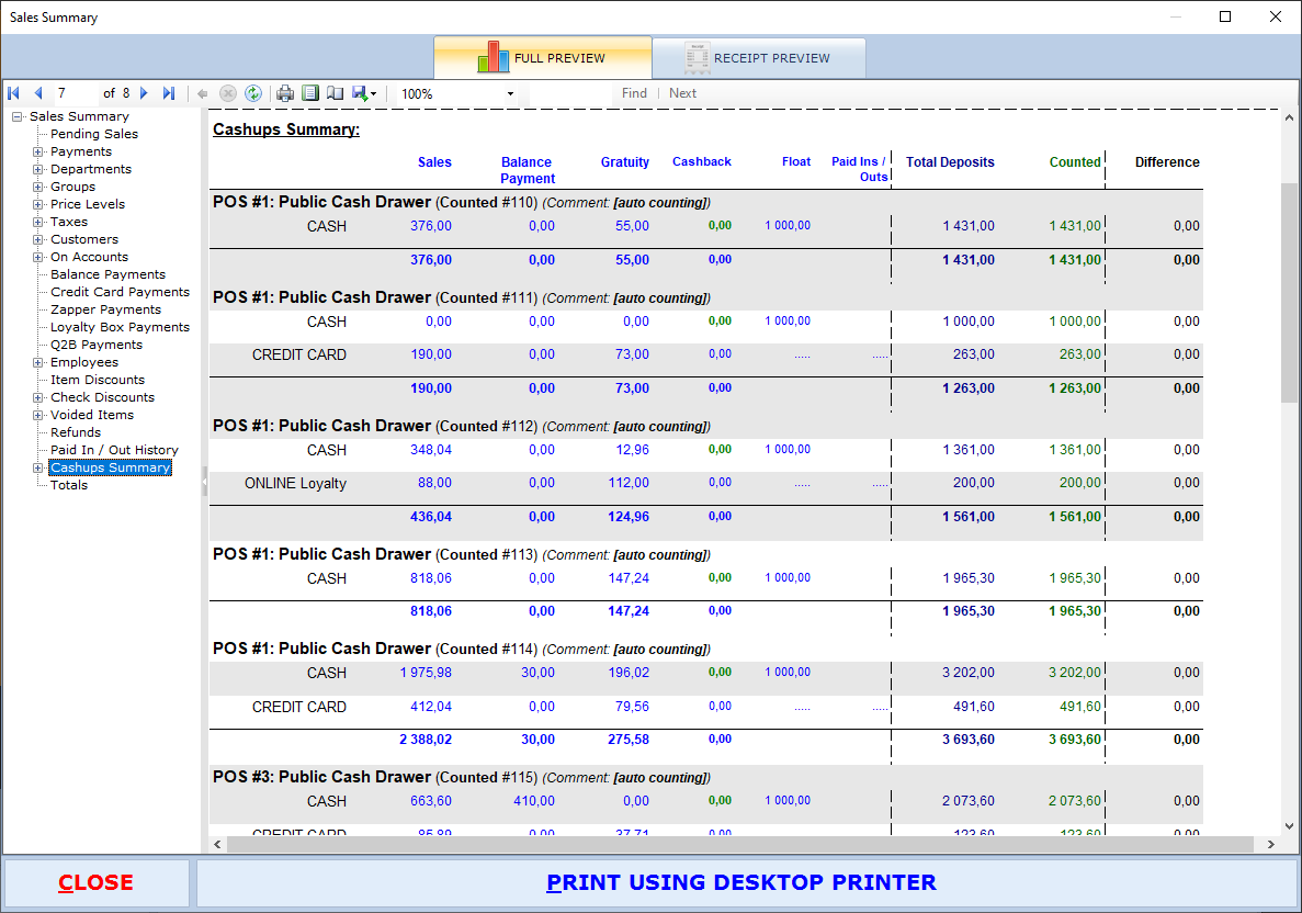 - customizable report filters and sets - password protected - table of contents for complex reports - A4 and receipt formats