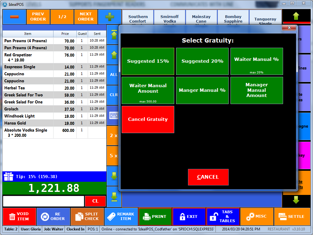 - manual gratuity (tip) - automatic gratuity (service charge) - password protected - actions are recorded in audit trail